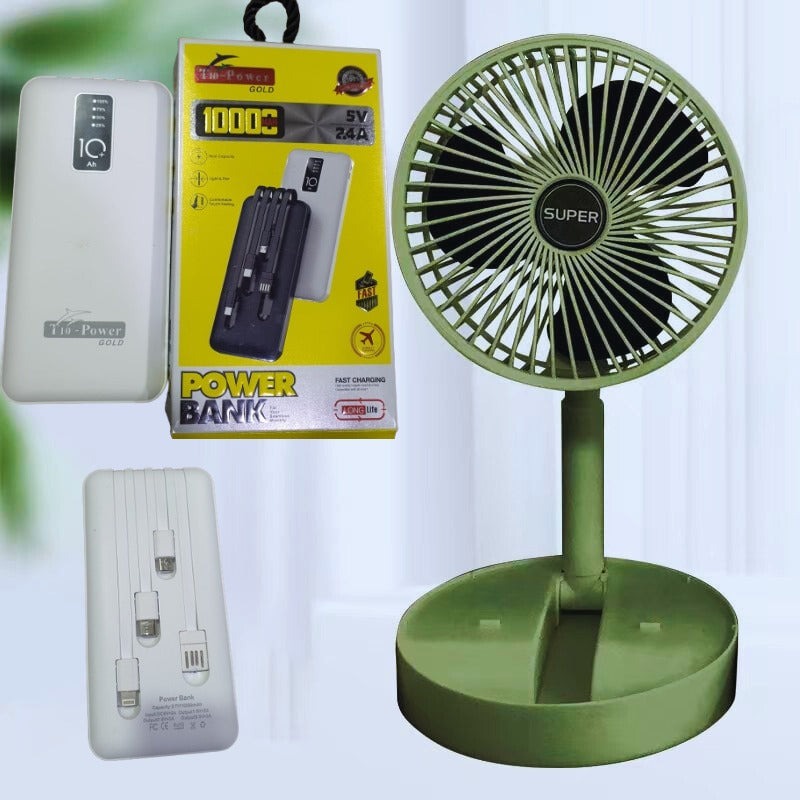 Telescopic Folding Fan & 10000mAh Power Bank: Stay Cool Anywhere! 🌀🔋 Up to 10 Hours Battery Life, Perfect for Outdoor Adventures and Emergency Power Needs!